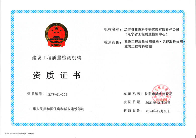 歡迎進(jìn)入遼寧省建設(shè)科學(xué)研究院有限責(zé)任公司(遼寧省工程質(zhì)量檢測中心)官網(wǎng)
