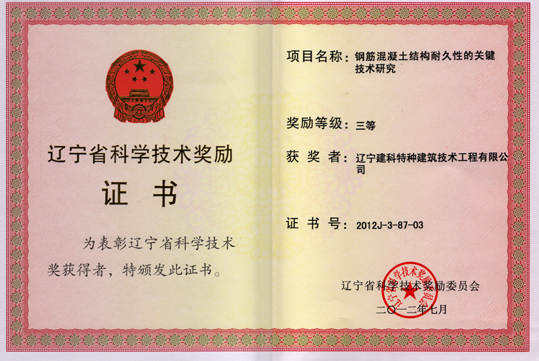 2015-遼寧省土木科技創(chuàng)新獎二等獎